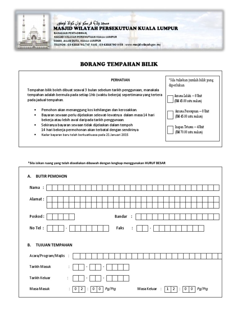 Contoh Borang Untuk Masjid