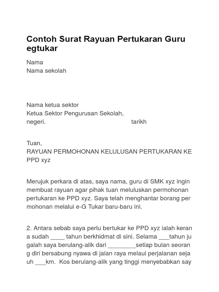 Contoh Surat Rayuan Pertukaran Guru Egtukar Pdf